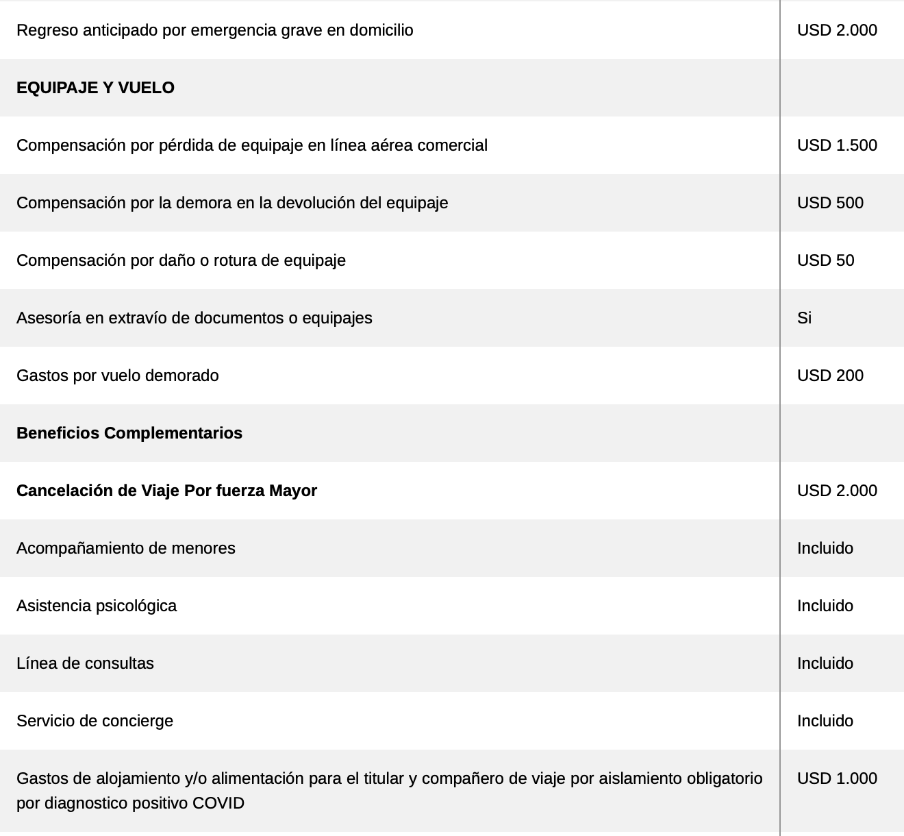 La asistencia médica cubre a nivel mundial excepto en el país de residencia del pasajero.
